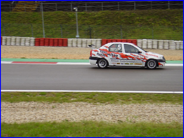 Im nächsten Abschnitt startete dann Henrik von Platz 2. In der ersten Runde fiel er durch einen kleinen Schnitzer auf Platz 3 zurück. Das sollte für den weiteren Verlauf egal sein, denn eine Runde später kam er in langsamer Fahrt aus der Ford-Kurve gerollt und blieb genau vor der Leitplankenlücke vor dem Fahrerlager stehen. Radnabe und Antriebswelle auf der linken Seite waren gebrochen. Er hatte mächtiges Glück, dass er auf allen 4 Rädern zurückgekommen war. Das Auto wurde mit Mühen ins Fahrerlager gebracht und hier wurde in gemeinsamer Aktion mit dem Berliner H.A.R.D.-Team und Maik Hertz vom RTH-Team die Reparatur in Angriff genommen. Genau genommen übernahmen die die komplette Reparatur, während Reinhard Stoldt sich darum kümmerte, die benötigten Ersatzteile und Werkzeuge herbeizuschaffen.