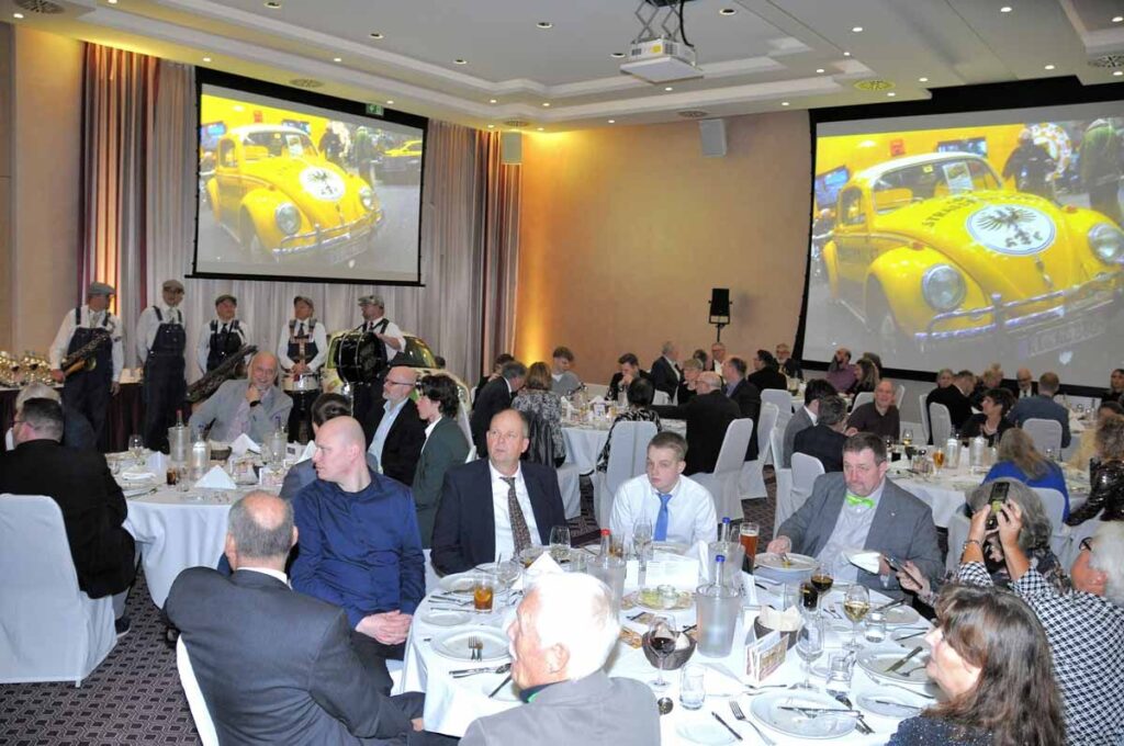 Der ADAC hatte sich wieder große Mühe gegeben, mit einem Rahmenprogramm mit Zauberer und Blechbläsern alle Zeitlücken zu füllen, um damit die Kommunikation der Anwesenden untereinander zu minimieren. Das Buffet war wieder reichhaltig und schmackhaft, ebenso wie Vor- und Nachspeise. Beim Essen wurden schon die ersten Pläne für die nächste Saison ausgetauscht. Es wird keine großen Überraschungen geben, aber der erste zu Ehrende 2025 steht schon fest. Reinhard hat mit 1000,5 Punkten sein Soll für das zweite Abzeichen mit Brillanten erfüllt.