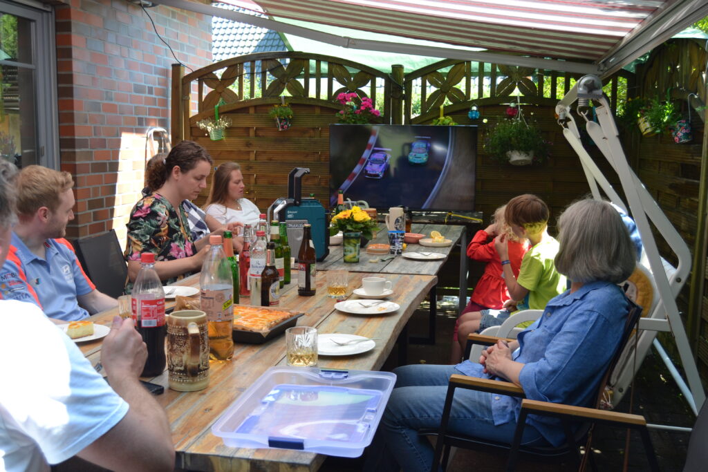 Zum Start des 24h-Rennens Nürburgring hatten sich einige Mitglieder bei Falk eingefunden um die erste Phase des Rennens anzuschauen und dabei das schöne Wetter im Garten zu genießen. Kulinarisches wurde natürlich auch geboten in Form von leckerem Kuchen, Salaten und Gegrilltem.