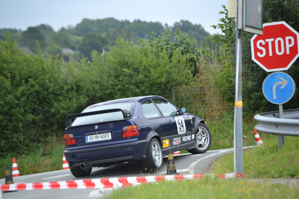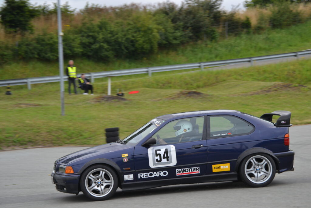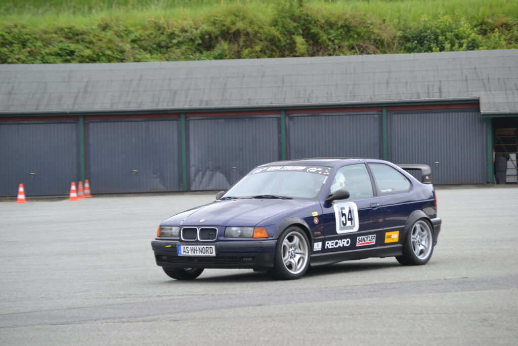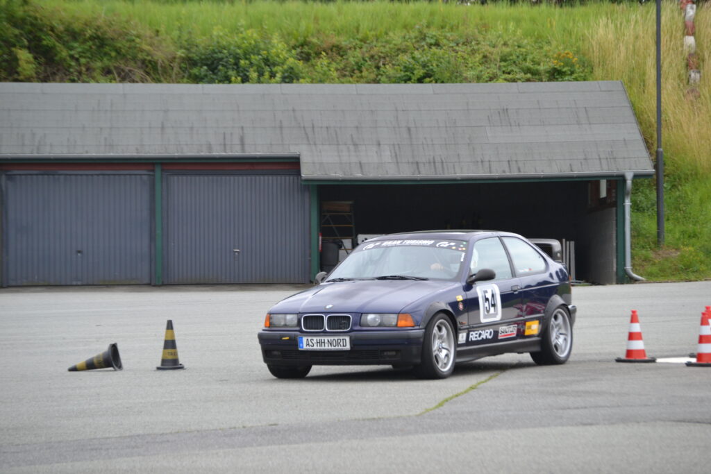 Durchwachsenes Wetter in Bad Oldesloe brachte einigen Klassen eine nasse Strecke, Thomas aber hatte weitgehend Glück, denn für die 12 bzw. 13 Starter der 3b war die Strecke trocken bzw. abtrocknend. Am Vormittag lief es auf trockener Strecke mit 17“ Profilreifen nicht optimal für Thomas, vor allem bergauf, Aber auch dank Fahrfehlern der Konkurrenz lag er auf Platz 6, zeitgleich mit dem fünften, der aber im ersten Wertungslauf schneller war.